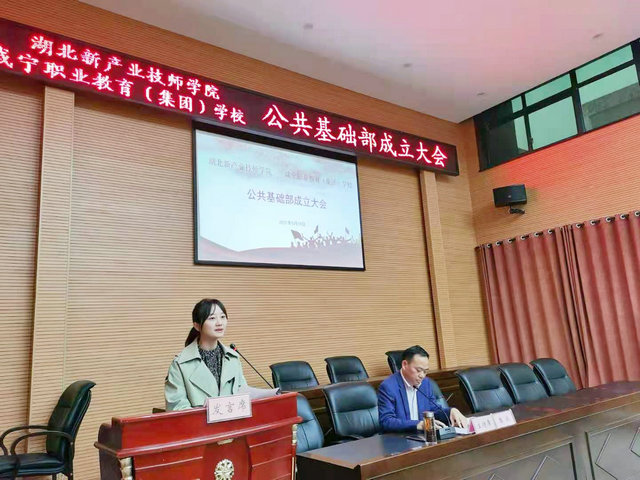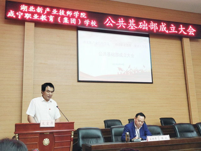 5月19日下午3时,咸宁职业教育(集团)学校公共基础部成立大会在勤政楼1号会议室隆重举行。校领导、教务处、人事处、各系部主任、书记及公共基础部全体专兼教师90余人参加会议。副校长樊斌同志主持会议,校党委书记杨金焱同志到会并发表重要讲话。