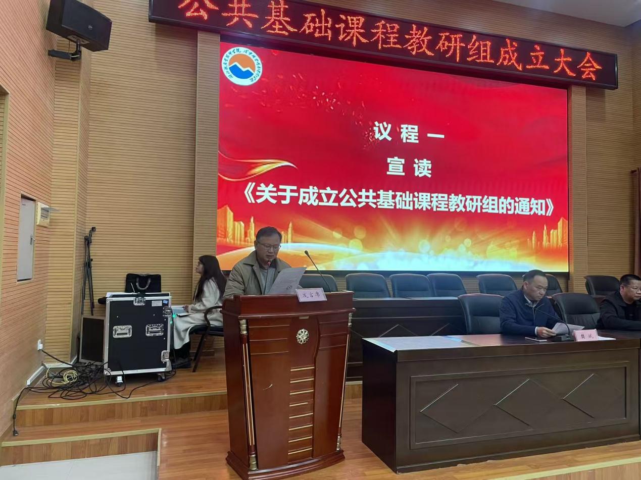 大会在庄重热烈的氛围中拉开帷幕。首先,教务处宣读《关于成立公共基础课程教研组的通知》,正式宣布成立语文、数学、英语、思政、体育五个公共基础课程教研组,明确各组人员组成与工作职责,标志着我校公共基础课程教学教研工作迈向规范化、专业化、系统化新阶段。
