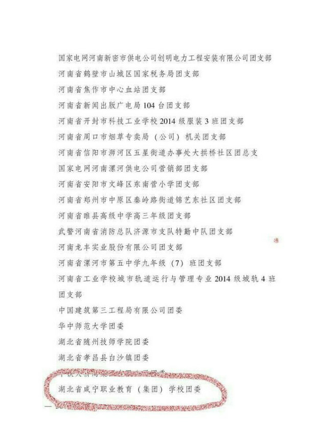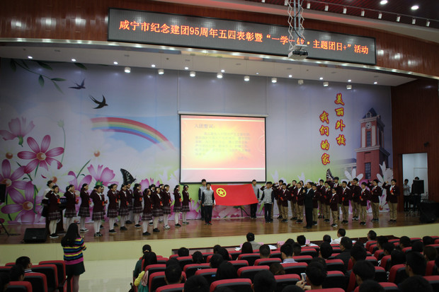 2017年5月4日上午8点,共青团咸宁市委2016年度表彰大会在咸宁实验外国语学校礼堂举行。我校9个系部优秀团员代表100人参加此次表彰活动。