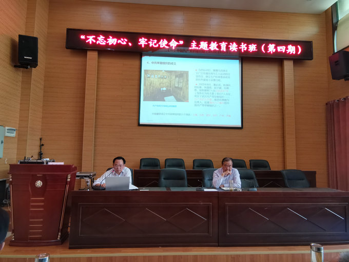 下午,副校长樊斌同志作党史、新中国史专题辅导--《英雄土地 伟大人民――湖北革命史概要》。通过讲述党的光辉历程和咸宁英烈故事,号召全体党员要坚定信念,爱党爱国;要坚守宗旨,一心为民;要甘于奉献,敢于担当;要解放思想,勇于创造。