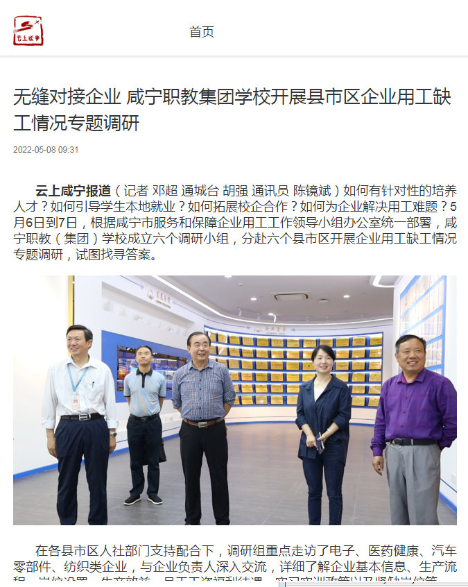 无缝对接企业 咸宁职教集团学校开展县市区企业用工缺工情况专题调研