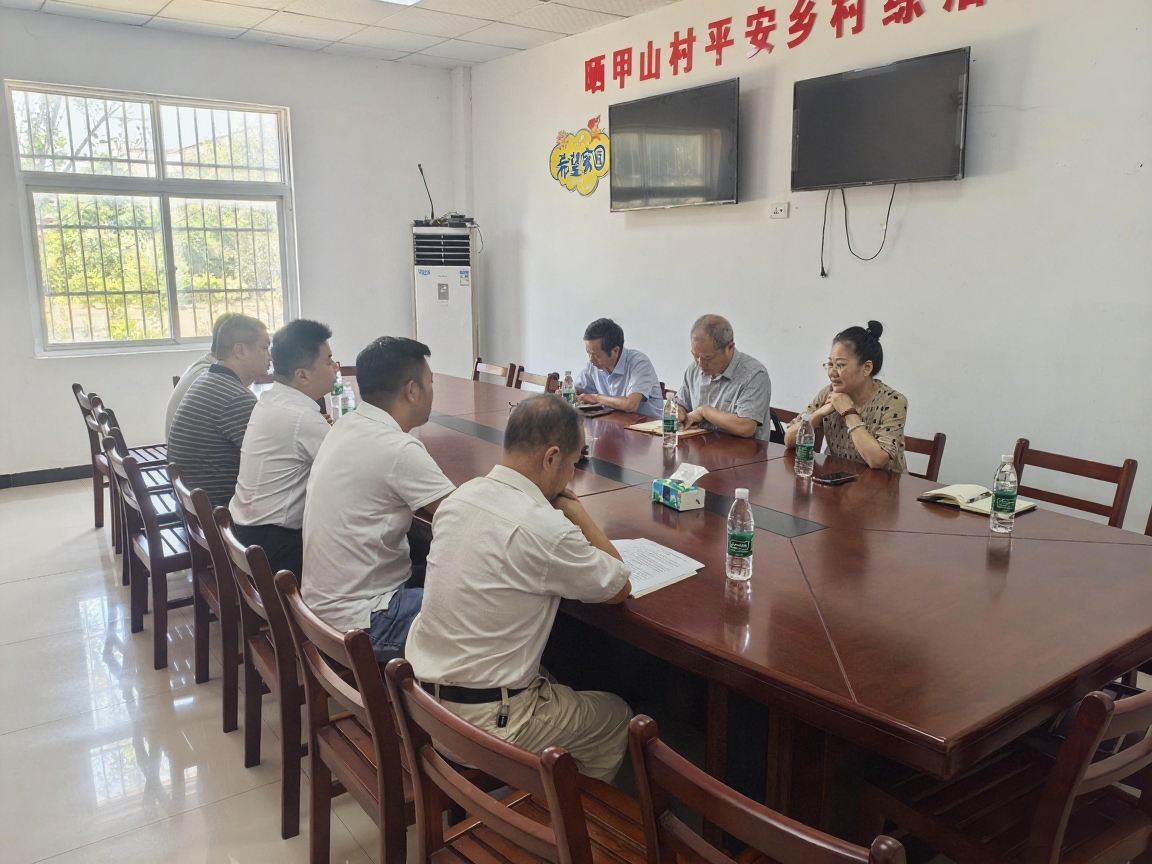 在晒甲山村村委会,明继武一行与镇、村工作人员召开座谈会,镇党委书记郑静、镇长陈宬详细介绍了镇情村况,晒甲山村党支部书记、村委会主任徐升对村资源禀赋、人口结构和产业现状以及村集体“三资”情况进行交流,参会人员一同深入分析当前村集体经济和产业发展存在的问题和困难,共同探讨村级产业新发展和村集体年经营收入增长的举措。