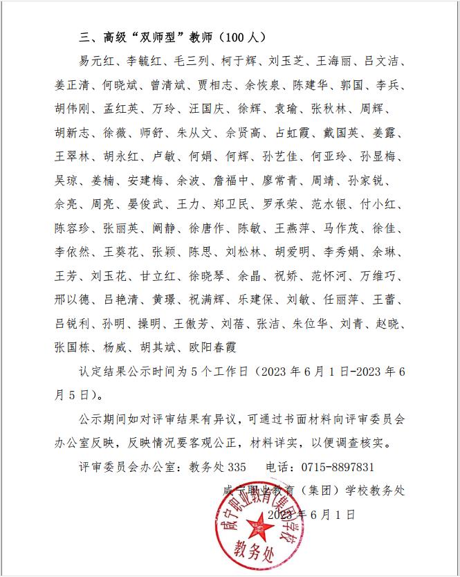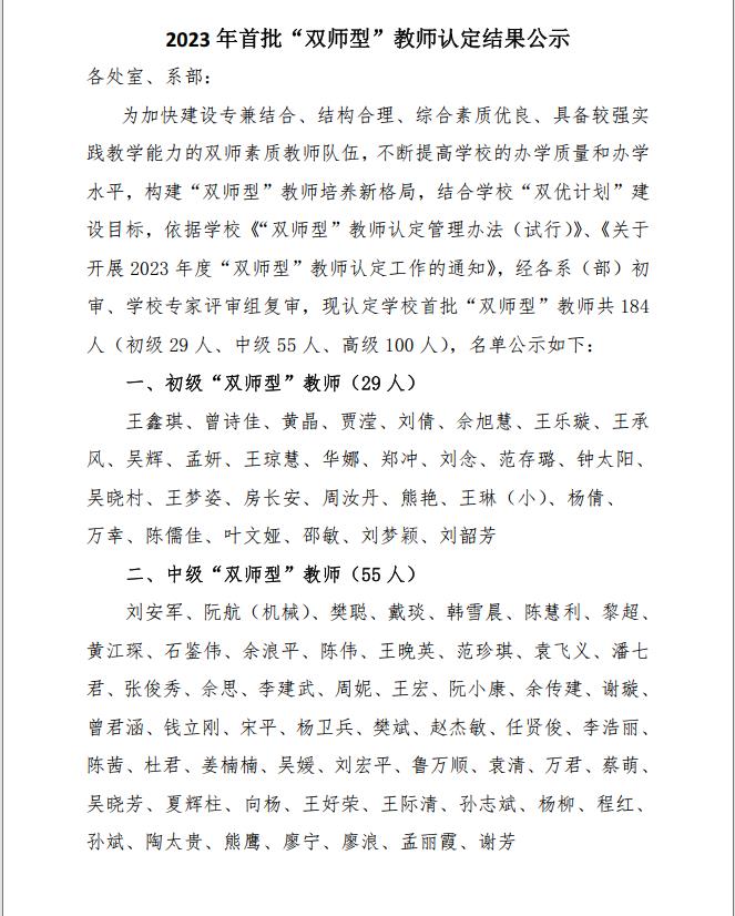 2023年首批双师型教师认定结果公示