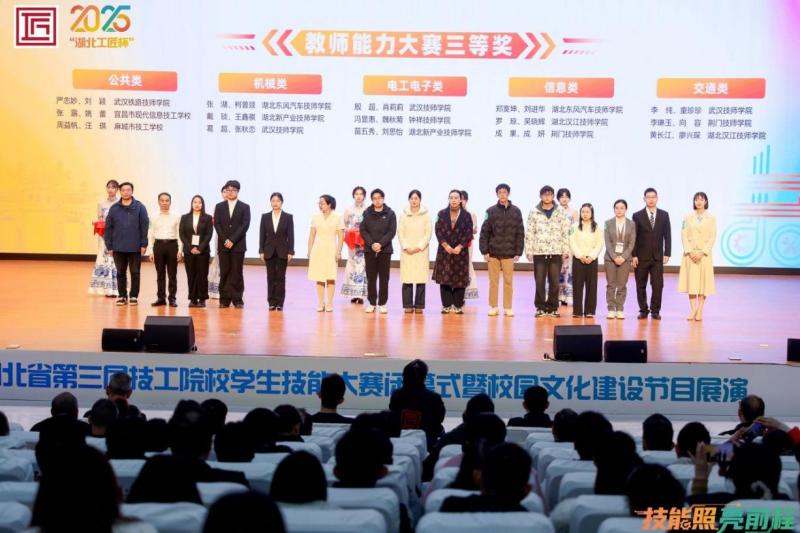 12月3日至5日,2025年“湖北工匠杯”技能大赛——湖北省第三届技工院校学生技能大赛暨第四届教师职业能力大赛在襄阳技师学院成功举办。本次大赛以“技能照亮前程”为主题,由湖北省人力资源和社会保障厅、襄阳市人民政府联合主办,是全省技工教育领域规格最高、规模最大的综合性赛事。大赛共设10个学生技能赛项及教师教学赛、班主任赛两大类教师赛项,吸引了来自全省17个市州、86所技工院校的700余名师生齐聚襄阳、同台竞技。