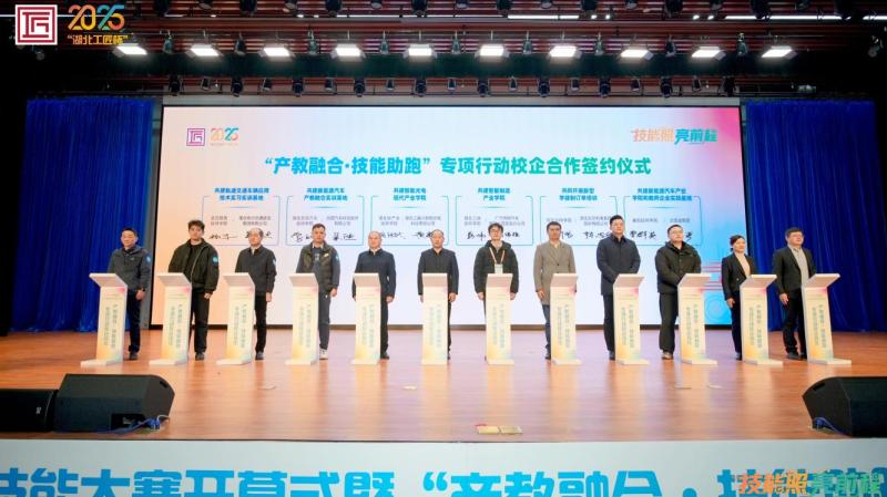 为进一步深化产教融合、校企合作,推动技工教育快速发展,大赛期间以“赛、测、研、会、展”相结合的形式,同步举行技能抽测、工学一体化教学研讨、“产教融合·技能助跑”专项行动校企合作洽谈、技工教育成果展示展演等系列活动。开幕式上正式开通“湖北省技工教育校企合作对接平台”,遴选优质合作项目现场签约,发布校企合作成果。我校与湖北三赢兴智能光电科技有限公司校企合作共建智能光电现代产业学院项目,被省人社厅遴选为12个优质合作项目之一。