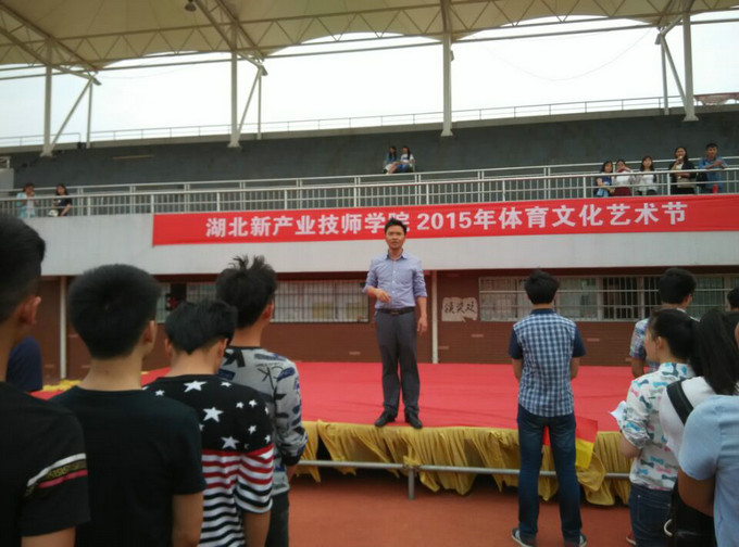 5月13日,湖北新产业技师学院田径场上呐喊助威声此起彼伏,热闹非凡,拔河比赛正在火热进行中,揭开了2015年校园文化体育艺术节的帷幕。 本次体育文化艺术节是一次集体育、文化和艺术等多项活动的系列盛会。体育设有拔河、篮球、足球等三个集体项目,艺术竞技设书法、绘画、摄影、歌手赛等四个项目,专业项目展示有5.12授帽仪式,还有微笑日专题活动,这次活动是我校校园文化建设和阳光体育活动的一次大展示,是对我校艺术教育成果的一次大展演和精神文明建设的一次大检阅。