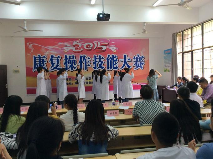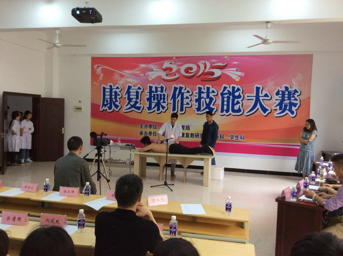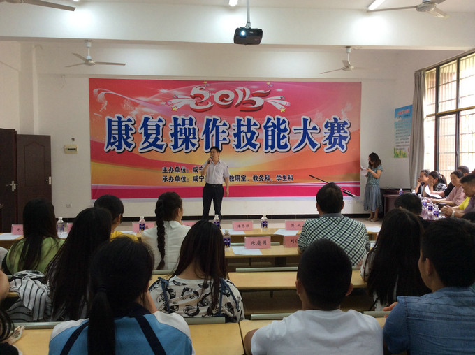 一年一度的医药护理系康复专业技能大赛在2015年5月13日下午三点准时在我校医护实训楼一楼多媒体教师隆重召开,集团学校副校长樊斌、副校长陈林等作为嘉宾出席会议。医药系主任范怀河为本次大赛致开幕词。
