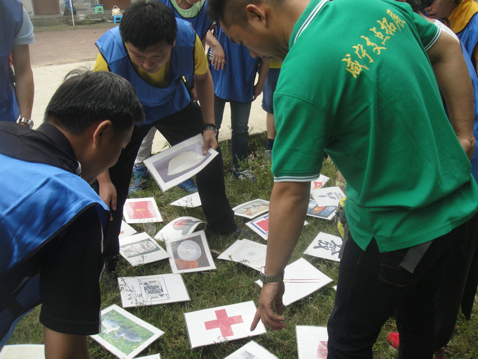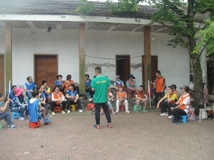 拓展训练从团队热身开始。通过热身活动,大家消除紧张,适应训练气氛。热身后,教练将班主任分红蓝两队。组队后,大家集思广益,选队名,定团队口号,以轻松愉悦的心情投入到各项培训活动中去。