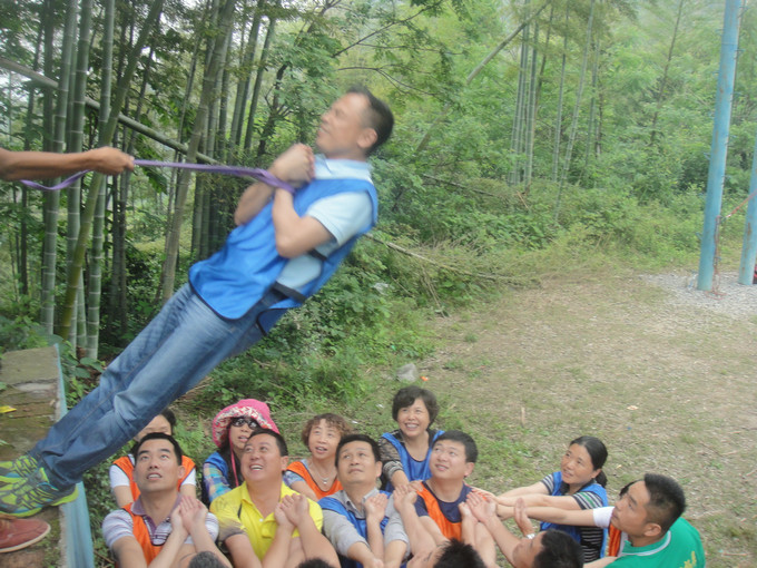 此次拓展训练共开展了培养发散性思维的“极速60秒”、增进团队默契度的“挑战150”、加强人与人信任感的“背摔”、挑战心理承受力的“高空速降”等项目。 在培训项目间隙,教练组织大家开展了趣味游戏:“贴身泡泡糖”和“松鼠的家”,要求出错的队员接受惩罚性表演。他们幽默的表演引得大家捧腹大笑。