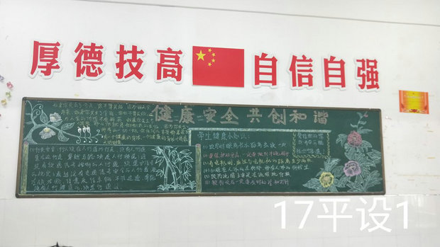 各班在班干部的精心组织和安排下,分工合作,黑板报主题鲜明,内容充实,构思新颖,画面美观,真正让安全知识深入人心,把安全意识融入到思想行动之中。系部学生会干部对各班黑板报进行了客观公正的评比,最终17平面设计1班第一名,16技能高考1班第二名,16技能高考2班第三名。