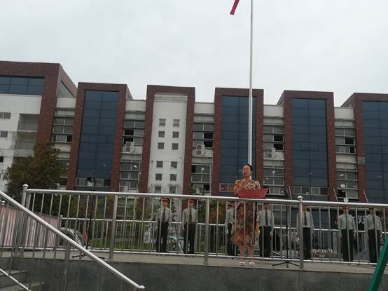 随后,高二(3)班的徐心同学,高一(4)班郭如心同学,分别代表老生新生作国旗下的讲话。徐心同学以《新学期,新目标》为主题,建议广大同学开学收心,树立信心,勇于挑战。郭如心同学真诚希望高一新生带上目标和理想,不怕苦累,迎难而上,并深情祝福老师们节日快乐!