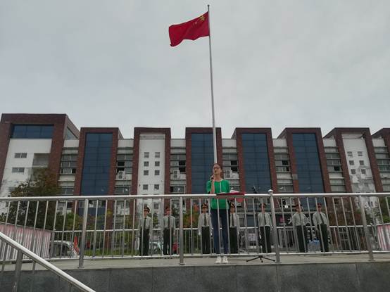 随着五星红旗冉冉升起,开学典礼在雄壮的国歌声中拉开帷幕。