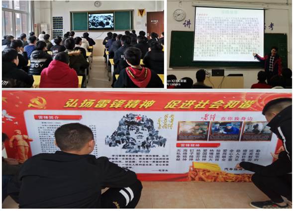 为弘扬雷锋精神,积极响应校学工处工作部署,汽车运用工程系率先开启雷锋月系列活动:以班会宣传动员、观看“雷锋”电影、唱雷锋歌曲、雷锋生平介绍、雷锋精神解读、雷锋在你我身边展板的多种形式,让学生了解雷锋其人、其事、其精神,通过学习、认识、思考、行动来传承精神学雷锋,无私奉献做雷锋。