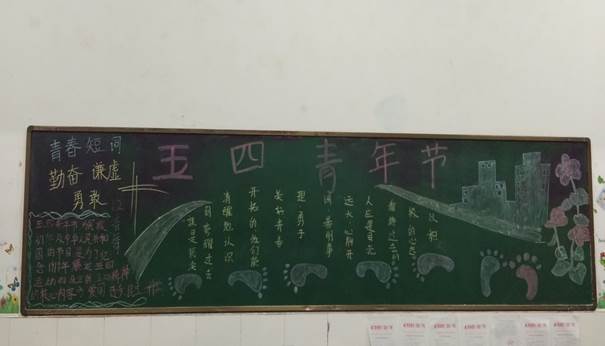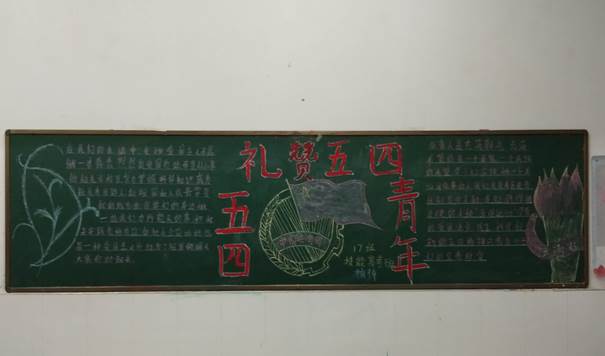 在“五四”青年节到来的时候,机械工程系为了让学生学习、了解这段光辉的历史,肩负起时代发展的重任,决定在全系所有班级开展一次以“五四”精神100周年纪念日为主题的黑板报评比活动;在一周的时间里,各班主任老师、班干部精心准备,在规定的时间里,相继完成任务,系部领导也非常重视,组织班主任老师将制作好的黑板报进行了评比,结果如下: