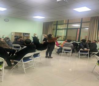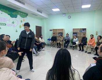 减压团辅培训活动在葛老师的带领下以“大风吹”“吹什么?”作为热身开始,根据游戏规则,每一个参与的教师都有可能成为新的主持人,每次吹的内容都不一样,现场气氛活跃,笑声不断,老师们都精神饱满、激情迸发。