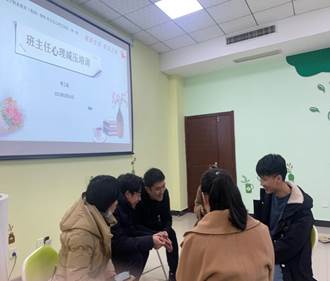 2023年3月24日,我校邀请湖北微末心理联合创始人、资深心理健康指导师葛小霞在心理健康中心团辅活动室举办了一场别开生面的班主任心理减压培训活动。学生工作处主任朱俊雄、副主任蔡萌出席活动,心理健康中心老师王晚英及各系部中青年班主任代表参加了活动。