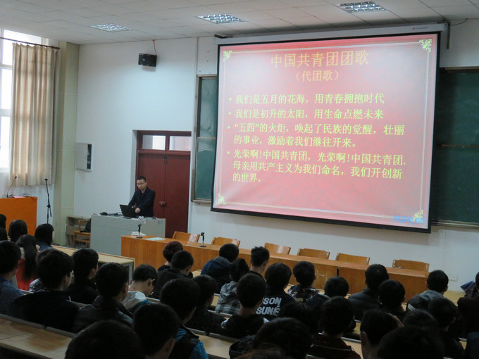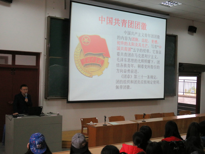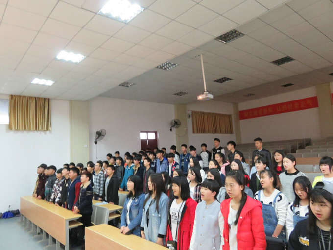 2016年4月25日晚自习,电子信息系新老团员在多媒体教室隆重举行了新团员入团宣誓仪式。参加本次活动的人员有学工科王慧芬老师、吴亮老师以及新老团员和入团积极分子共八十六人。