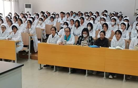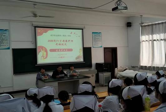 为贯彻落实教育部等四部委颁发的《关于在院校实施“学历证书+若干职业技能等级证书”制度试点方案》,切实做好1+X证书制度试点工作,有效探索岗课赛证融通,优化人才培养实施方案,提高培养质量,增强学生就业竞争能力。经过精心组织,认真遴选,最终确定2021级护理专业111名学生参加此次培训。10月19日,在实训楼三楼示教室举行1+X证书制度试点工作母婴护理培训开班仪式。医药系党支部书记欧阳春霞、临床护理教研室负责人张洁、母婴护理师资团队成员参加,护理系党支部赵晓书记主持。