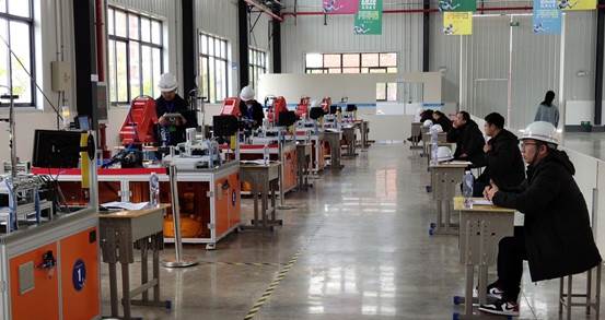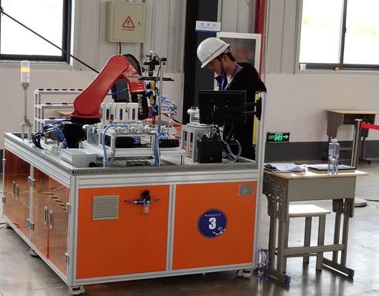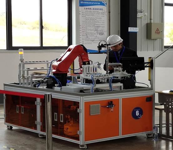 本次大赛有来自岳阳、九江、黄冈、黄石、鄂州、咸宁和湖北新产业技师学院7个代表队共40人同场竞技,其中不乏国赛选手参与。从11月22日到24日,共经历了八场比赛,其中第一场为理论考试,实操竞赛环节职工、学生混搭,场次不单独分开,同台竞技(竞赛内容有区别)!为保证竞赛的公平、公正性,大赛执裁及整个赛事工作全部交由华中数控股份有限公司,严格按照省级技能大赛的要求布置,选手按要求先给工业机器人装上“手”、“眼”、“大脑”,再按照要求来完成工作任务,整个过程要做到精准无误。
