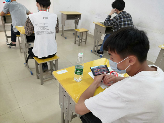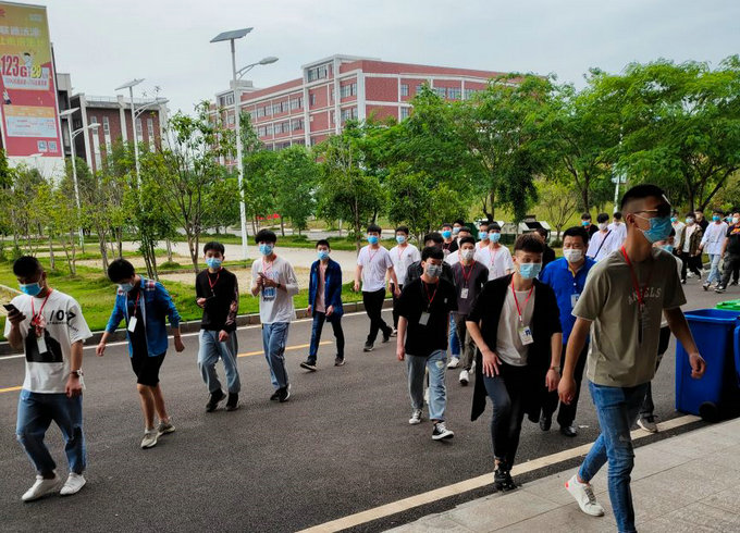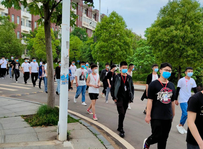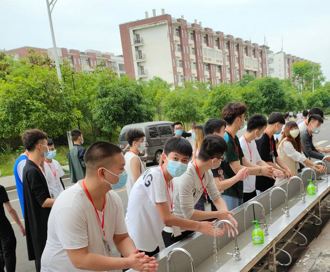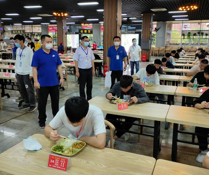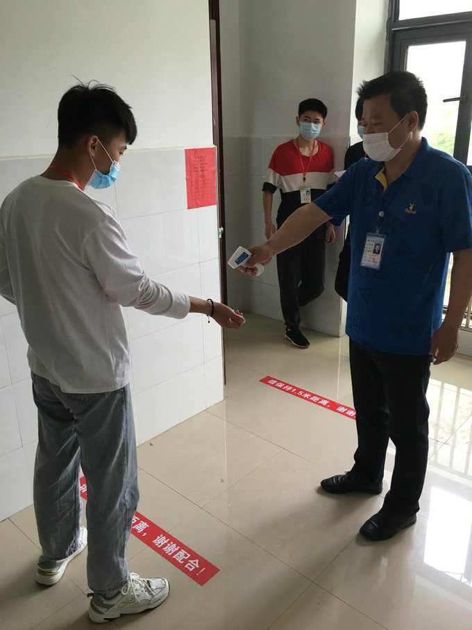 5月6日当天,学生在完成测量体温,在班主任老师处办理学生证及上交个人健康承诺书以后,统一到班级集合,检查学生防护用品准备情况及到校以后的注意事项,按照要求,到寝室整理好床铺后,由当天值班老师及班主任组织学生排队到食堂吃饭,饭前饭后洗手,在规定的时间进餐,到教室同学之间保持1.5米距离测体温,并一一进行登记,一切都在有条不紊的有序进行。