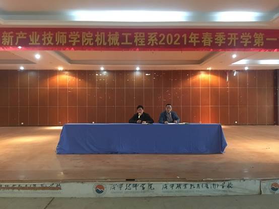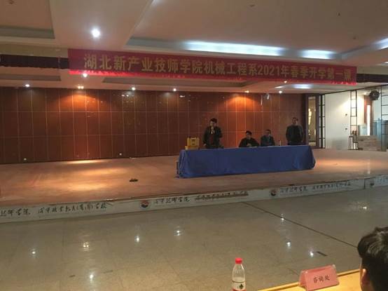 新学期,新希望,成就梦想。为了激励全校学生振奋精神、锐意进取、以良好的精神风貌投入到新学期的学习中。3月1日上午,机械工程系开展了以“讲安全、爱劳动、学技能、成就梦想”为主题的开学第一课活动。活动由机械系何晓斌同志主持,系主任饶文军同志、副主任贾相志同志等系领导、19级、20级全体学生和班主任均参加了此次活动。易元红校长、樊斌副校长、教务处、行政办等领导莅临现场指导。