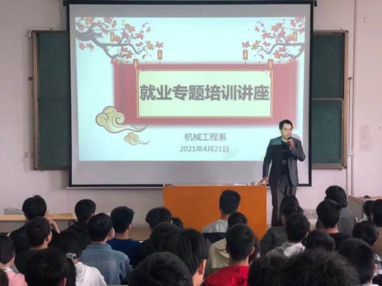 为了保证2019级学生顶岗实习顺利进行,熟悉学院顶岗实习规章制度,帮助学生掌握就业信息及面试技巧,机械工程系于4月21日下午在阶梯教室二楼204室组织2019级顶岗实习学生参加顶岗实习动员会,并开展《面试礼仪及技巧》就业专题讲座。系招生就业办公室主任余恢泉出席动员会,讲座邀请陈新建老师主讲。