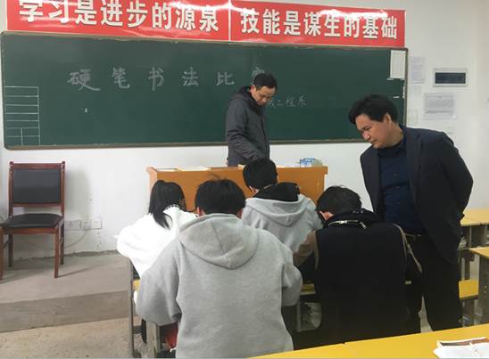 这次活动的开展,既丰富了学生的文化生活,也培养了学生的书法兴趣和爱好,同时提高了他们的审美意识;活动中,系部主任饶文军、书记何晓斌等领导也到比赛现场观看同学们比赛!