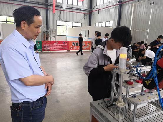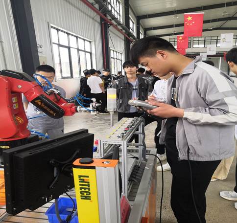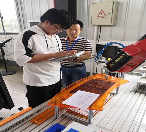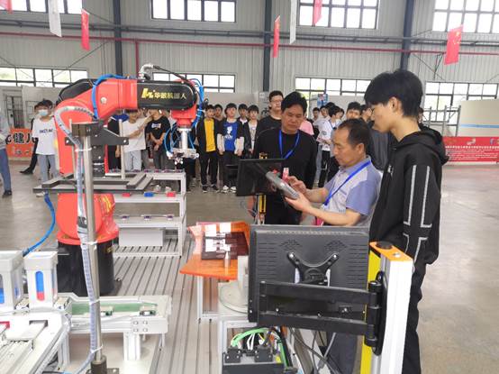 此次比赛以“中国制造2025”规划为背景,通过技能竞赛促进和引导工业机器人相关专业建设,以赛促教,为工业机器人及系统在企业中的应用提供人才保障。本赛项以华中数控工业机器人智能工作站作为竞赛平台,参赛选手共分为两组,在2小时内完成工业机器人应用调试、工业机器人标定及示教器示教编程、搬运等任务。经过紧张的比赛,同学们沉着应战。由裁判组依据参赛选手的完成时间和完成质量等得出最终成绩,最后根据排名分别评选出一等奖(1名)、二等奖(2名)、三等奖(3名)。