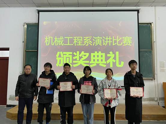在中国共产党成立100周年之际,为进一步加强学生爱国主义教育,提高学生的爱国主义精神,引导广大青年团员、学生立大志、明大德、成大才、担大任,推动校园文化建设。11月9日下午,机械工程系团总支在阶梯教室开展“请党放心,强国有我”主题演讲比赛,系主任饶文军、书记何晓斌出席了本次比赛,张丽英、余恢泉、樊聪、刘玉芝、镇蕾、王鑫祺六位班主任老师观看了比赛。