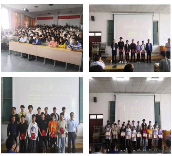 系党支部书记何晓斌、系负责人贾相志、系校企合作办主任余恢泉及阮长顺老师分别为受表彰学生颁奖并合影留念。