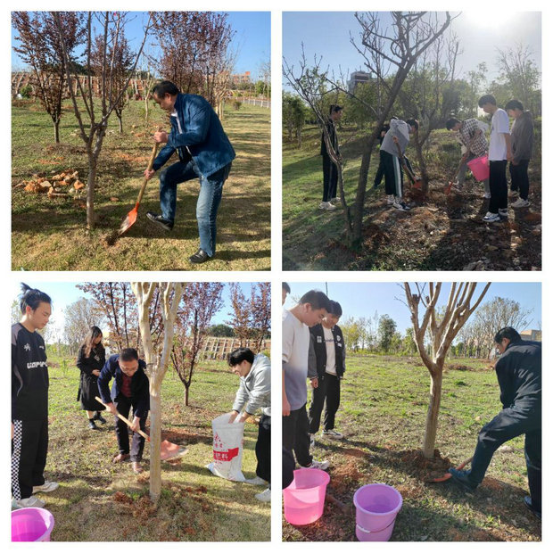 3月12日下午,系部分教师及团员代表在学校三号教学楼周围小树林集合。系团总支负责人王鑫祺老师作了动员讲话,他向大家介绍了植树节的由来和植树的意义,并倡导大家向雷锋同志学习通过这次植树节活动将学习雷锋精神落到实处。随后在系部负责人贾相志、系党支部书记何晓斌的带领下,各位老师和团员纷纷行动起来,大家铲土、施肥、培土、浇水,各司其职,在汗水的浇灌下,15棵树苗迎风而立,焕发出新的生机与活力。