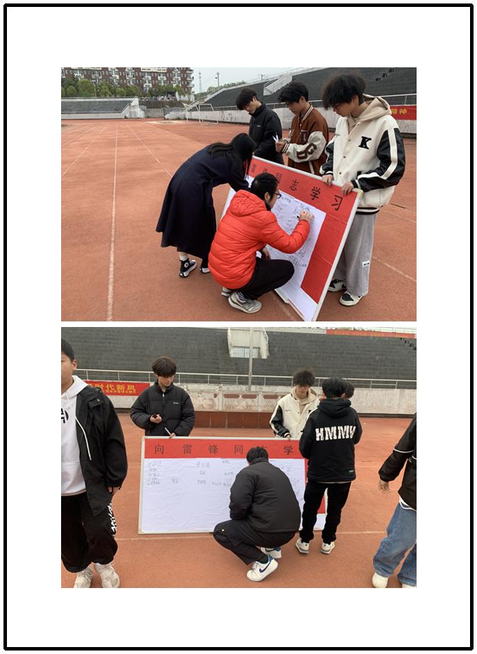 随后,主持人向全体师生宣读向雷锋同志学习倡议书,师生代表在倡议书上郑重写下自己的姓名,在思想上树立学习雷锋服务社会意识。