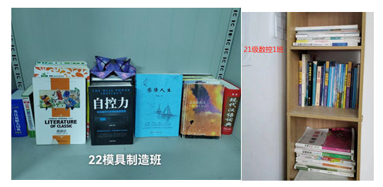 首先各班组建班级图书角,图书的来源可以由学生自愿分享,并进行良好的管理,下一步将在系部寝室中组建图书室,方便同学借阅,从而进一步提高系部文化氛围。