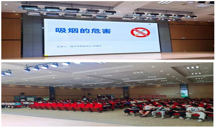 活动中咸宁市疾病预防控制中心的专家为同学们开展了两个知识专题讲座,分别是:《吸烟的危害》和《食品营养》。