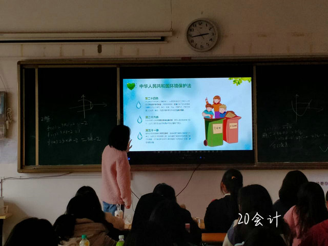 优美的环境需要大家共同营造,文明的行为需要我们一点一滴的积累。为营造人人保护环境的良好氛围,树立环保行为从我做起、从现在做起、从身边的小事做起的环保意识。电子信息系于2021年3月10日下午开展了以“环境你我他,绿色靠大家”为主题的班会活动。