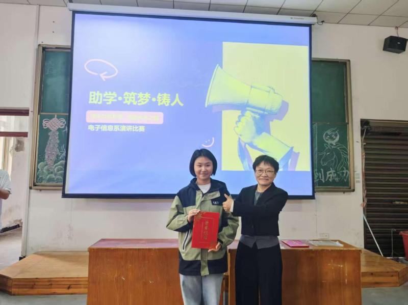 为深入贯彻国家资助政策,充分发挥资助工作的育人功能,引导学生树立“受助思源、励志自强、立志成才”的价值观,2026年4月10日,电子信息系在阶梯教室开展了“助学·筑梦·铸人”主题演讲比赛。学工科科长樊高原,以及余浪平、徐辉、刘昊、黄江琛、李旺珊老师受邀担任本次比赛评委,电子信息系各班级学生代表到场观赛,共同见证这场关于梦想与感恩的青春盛会。