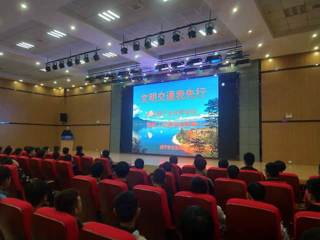 2019年11月15日下午,在众创空间二楼,汽车系特邀咸宁市公安局交警支队二大队高新区中队长李华林、指导员黄金朝为200多师生做了一场生动的“文明交通我先行”的文明交通进校园讲座,指导员黄金朝通过鲜活的案例、真实的画面、详实的数据为我们敲响了一记又一记轰鸣的警钟。