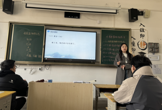 专业课程与公共科目双管齐下。在《英语》课上,吴思晓老师采用课上课下结合的教学模式,课上播放丝绸之路相关的知识视频教词汇,加分制度激发学生主动性,课下布置阅读任务定期检查;《语文》课上,学生开展小组合作,探究景泰蓝工艺流程,分析工艺操作程序及工艺特点,提升学生总结和表达能力;《心理健康与职业生涯》课上,宋子欣老师用组词接龙游戏活跃气氛,增进师生了解,之后引导学生掌握心理调适方法。随堂听课中周菡老师《数学》课板书漂亮,清晰美观。而且,各科教师巧妙融入安全意识、传统文化、工匠精神等思政元素,助力学生树立正确价值观和职业观。