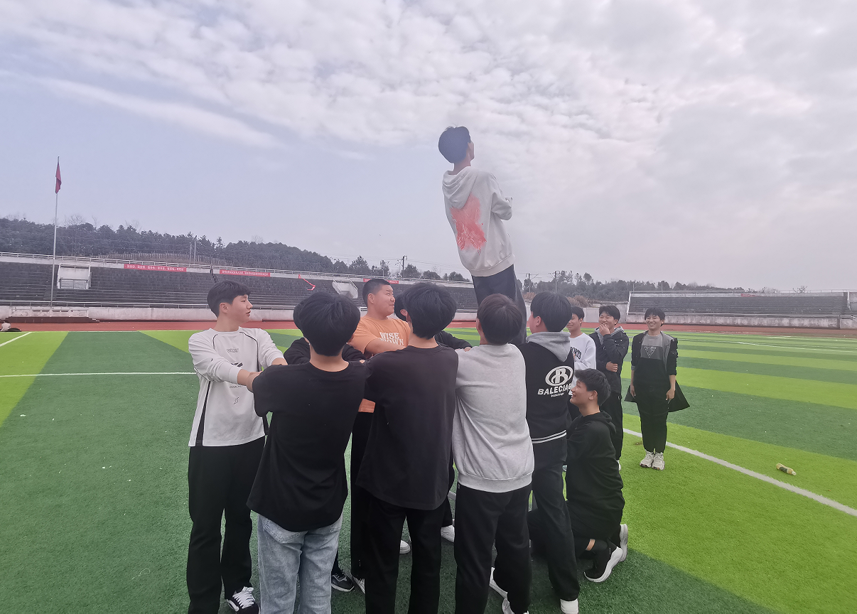 他们紧闭双眼,深吸一口气,决然向后倒去。那一刻,时间仿若静止,只有心跳在胸腔里如战鼓擂动。而下方的队友们,目光如炬,手臂紧绷,稳稳地接住倒下的同学,似是接住了世间最珍贵的宝物。每一次成功的倒下与托举,都是勇气与信任的完美交融,是自我突破与团队精神的升华。在这一倒一托间,同学们领悟到,青春之路纵有荆棘,只要心怀勇气、信任同伴,便能跨越万水千山,向着光明昂首前行。