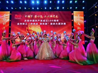 为隆重庆祝中国共产党百年华诞,歌颂党百年光辉历程和伟大成就,讴歌党领导全国人民不忘初心、砥砺前行的丰功伟绩,激发全市广大职工爱党爱国的奋斗情怀,引领和激励全市广大职工在开启新征程、奋进“十四五”中再立新功汇聚磅礴力量,5月31日晚, “中国梦 劳动美 永远跟党走”庆祝中国共产党成立100周年全市职工“学党史、颂党恩”演讲大赛决赛在市人民广场隆重举行,活动中咸宁职业教育(集团)学校艺术体育系师生编排的歌舞节目《鼓舞中国》、《灯火里的中国》、《走在大路上》演出圆满成功!