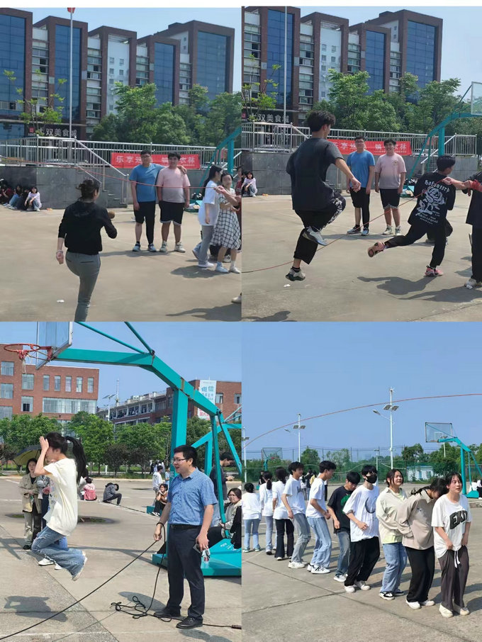 活动第二项15人鱼贯式跳绳。裁判一声令下,只见绳子飞速地运转,整个赛场的气氛都被带动起来。整个比赛环节,教师也参与其中,有的亲手为学生担任甩绳员,有的化身为队员,表现出与学生高度的默契,令在场观众赞叹。最终22畜牧宠物班以188个的佳绩取得此项目的冠军。活动现场,22网络营销班同学们表示:“本次活动为我们师生之间创造了一次小型团建机会,让大家在富有趣味性的运动中拉近了师生距离,更愉快地认识彼此、了解彼此。”