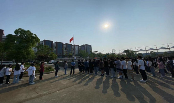 在庄严的国歌声中,鲜艳的五星红旗高高飘扬,全体师生向国旗行注目礼。响亮的国歌、鲜艳的国旗、师生们坚毅的眼神中,充满着自信与希望。