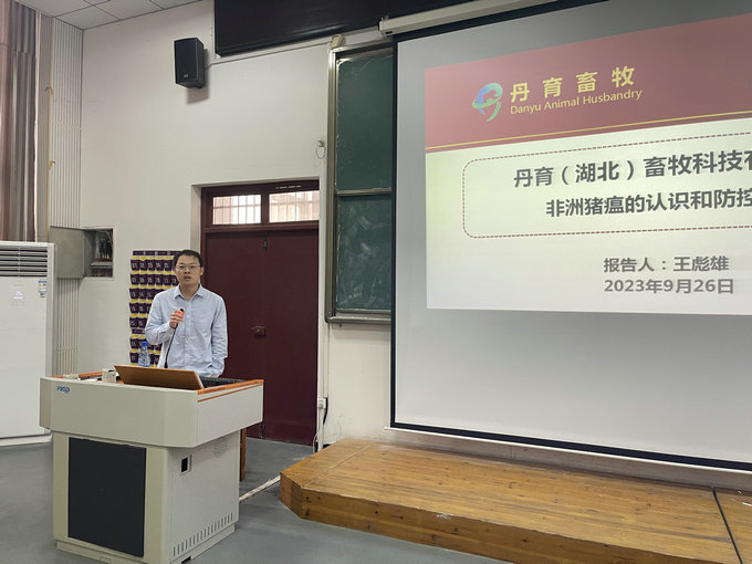 为贯彻落实习近平总书记关于职业教育工作的重要指示,牢牢把握党的二十大报告对职业教育工作的新要求,进一步深化职业教育产教融合、校企合作,实现资源共享、专业共建,形成校企合作共赢、共谋发展的良好局面,9月26日上午,农林工程系邀请湖北(丹育)畜牧有限公司专家王彪熊,为全年级畜牧兽医、宠物医疗班学生和农林系专业老师带来一场主题为“非洲猪瘟的认识和防控”的讲座。
