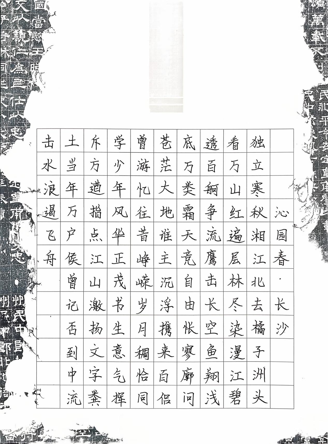 全篇作品注重了笔画的粗细变化,章法也比较统一协调,注意结构不可向右下方歪斜,相同笔画之间空白要均匀统一,还要加强笔画的练习,多临帖。
