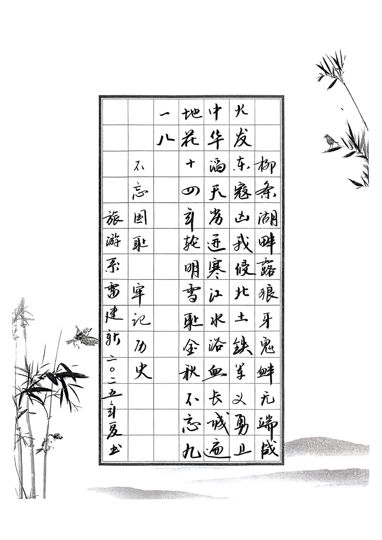 为深入贯彻落实爱国主义教育,弘扬中华优秀传统文化,同时纪念世界反法西斯战争暨中国人民抗日战争80周年,我校举办了“诗词在我心·铭记抗战魂”的教师硬笔书法展。此次活动不仅是一场校园文化盛宴,更以艺术为纽带,搭建起历史记忆与当代使命的桥梁,成为我校爱国主义教育与文化传承的生动实践。