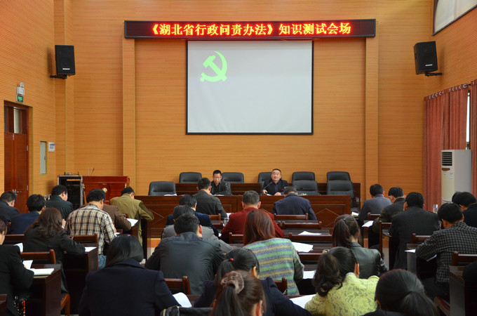 2、全校干部职工以党总支、党支部为单位举行了《湖北省行政问责办法》知识测试。