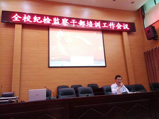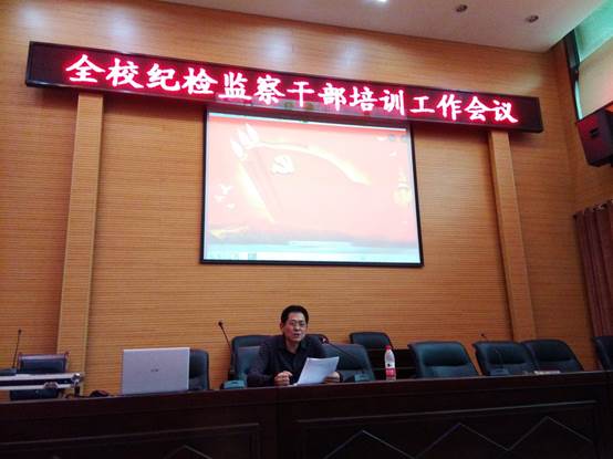 为进一步加强纪检队伍建设,规范监督执纪行为,更好地发挥纪委委员和纪检委员的作用,深入推进学校党风廉政建设和反腐败工作,9月26日下午,校纪委在行政楼大会议室举办纪检监察干部业务培训会,培训由纪委书记庞旭刚主持,全校纪委委员、纪检委员及监察审计室全体人员参加培训。