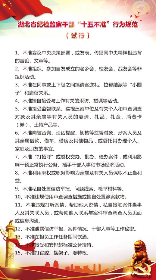 党纪法规:湖北省纪检监察干部“十五不准”行为规范(试行)