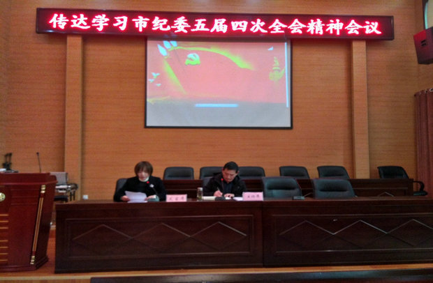 会议传达了市委书记丁小强在中国共产党咸宁市第五届纪律检查委员会第四次全体(扩大)会议上的讲话精神,丁小强强调,始终坚持把党的政治建设摆在首位,坚定不移将全面从严治党进行到底。会议学习了市监委主任程良胜《落实高质量发展要求推动我市全面从严治党取得更大实效》的工作报告。