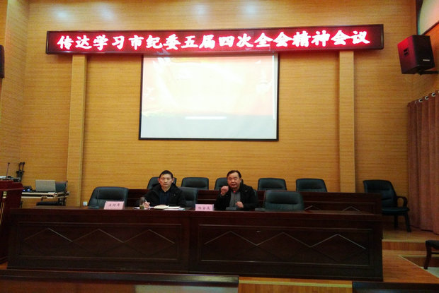 2019年2月22日下午3时,校纪委在二楼大会议室召开专题会议,传达学习市纪委五届四次全会精神。会议由纪委书记庞旭刚主持,纪委委员、各党总支党支部书记、纪检委员,招生就业处、总务处、财务处、项目办、采购中心、后勤集团负责人参加会议,校党委书记杨金焱出席会议并讲话。